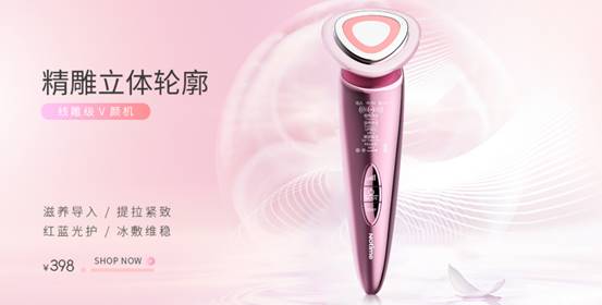 作为一款颠覆性的美容仪器,焕彩V颜机以院线级的电脉冲以及蓝光冰护为亮点,重磅上线,八大院线功能,轻松解决肌肤护理的各类问题,覆盖提拉紧致、焕亮嫩肤、控油净痘、净透毛孔等作用,为更多想要打造少女容颜的消费者提供一个更便捷的护肤方案。这款美容器可以针对皮肤干燥,暗沉,痘痘肌或者皮肤松弛等问题带来更好的解决方案,通过超微清洁、滋养导入、UP提拉紧致、眼部赋活及MIX冰护五大模式,面向消费者提供媲美院线级美容仪的护肤体验,其多效合一的护肤功效,吸引了更多消费者选择。